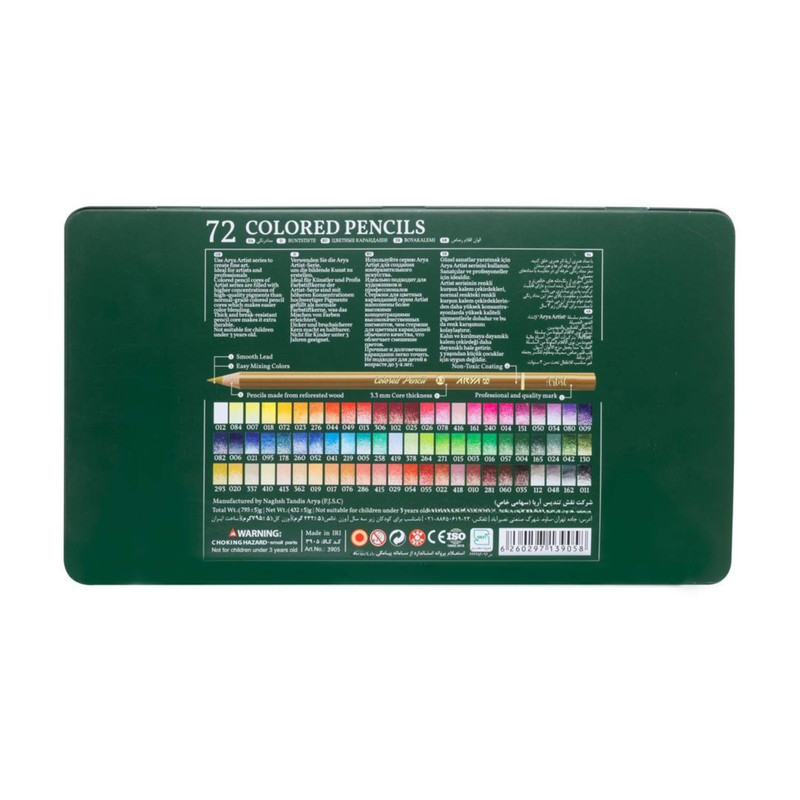 مداد رنگی 72 رنگ آریا آرتیست، انتخابی ایدهآل برای هنرمندان حرفهای، دانشآموزان هنر و علاقهمندان به نقاشی است. این مجموعه در یک جعبه فلزی مقاوم و زیبا ارائه میشود که هم حمل آسان و هم محافظت از مدادها را تضمین میکند. مدادهای این سری دارای مغزی نرم و روان هستند که رنگدانههای غنی و شفاف آنها به راحتی روی انواع کاغذ منتقل میشود. تنوع رنگ بالا، امکان ترکیب طیف وسیعی از رنگها را برای خلق آثار هنری جذاب فراهم میکند. بدنهی ارگونومیک مدادها از چوب با کیفیت ساخته شده و در دست گرفتن آنها حس خوبی به هنرمند میدهد.