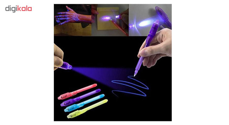 با استفاده از این قلم میتوانید هر نوع متن را نوشته و آن را از دید مخفی نگهدارید . با تاباندن نور فرابنفش به متن ، نوشته شما روشن شده و به نمایش در می آید . با استفاده از این محصول می توانید طیف وسیعی از نوشته های مخفی را ایجاد کنید . این نوشته برای کنترل گارانتی ، حفظ و امنیت اسناد ، کنترل تردد افراد مجاز و .... بکار میرود. بسته ارسالی شامل 4 عدد خودکار نامرئی شوخی به رنگهای سبز , زرد , صورتی , آبی خواهد بود.