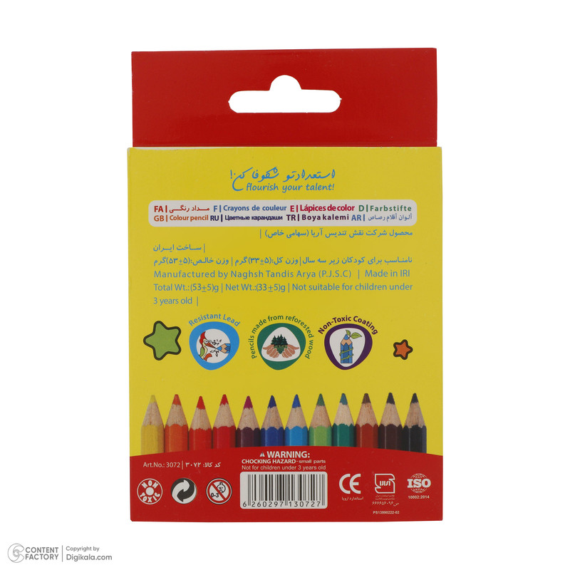 دستهبندی: مداد رنگیطول بدنه: 85 میلیمتروزن: 1 گرمفرم سطح مقطع: شش ضلعیقطر سطح مقطع: 5 میلیمترتعداد رنگهای موجود در بسته : 12جنس جعبه : مقواییسایر توضیحات : - دارای جعبه کشوییابعاد : 8.5x0.5x0.5 سانتیمترنمایش بیشتر