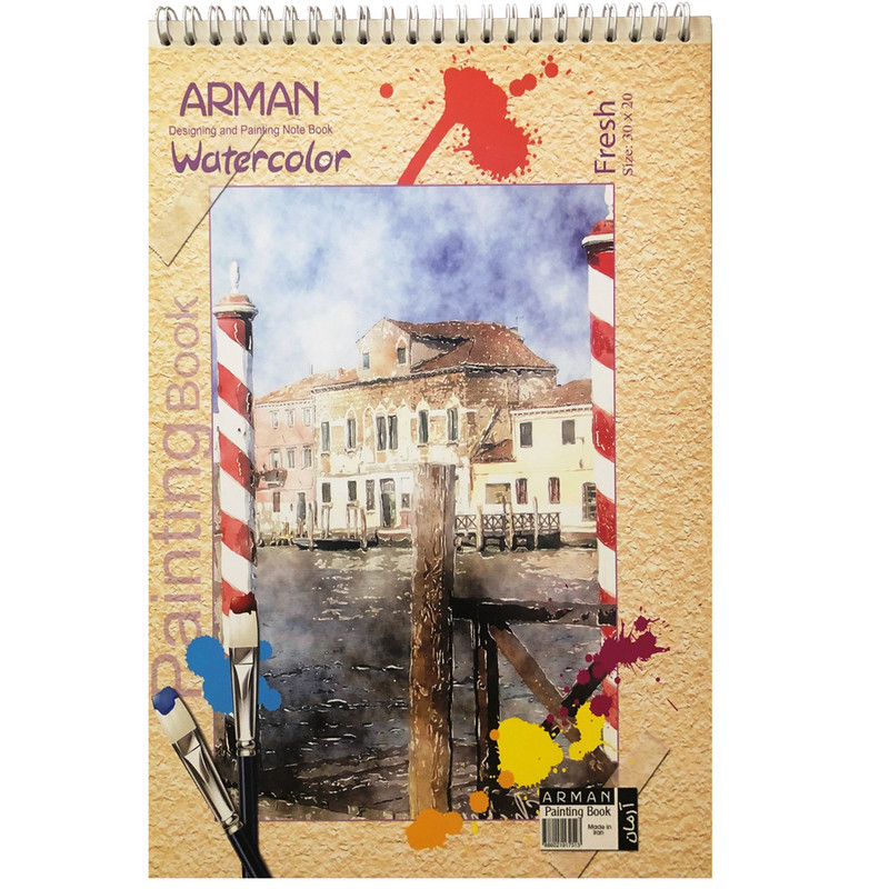 دفتر آبرنگ A4 آرمان طرح خانه ساحلی با جلد مقوایی ضخیم