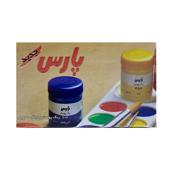 سایر توضیحات: گواش پارس شش رنگ دارای شش طیف رنگی زیبا شامل سفید (کد 150)، زرد (کد 358)، قرمز (کد 475)، آبی (کد 620)، سبز (کد 790) و مشکی (کد 252) می باشد و در حقیقت طیف خوبی از رنگ ها را در اختیار قرار می دهد.